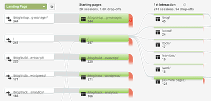 For example, if the primary page is the home page and many users bounce off, while the second one is blog and users continue browsing, marketers can conclude that the home page doesn’t do a good job convincing users. Comparing starting pages should give a clear idea of which pages effectively draw users further into the site.