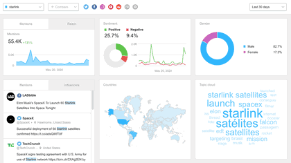 You can even look at particular sentiments, trending topics, and influencers, according to the mentions displayed on your customizable dashboard.